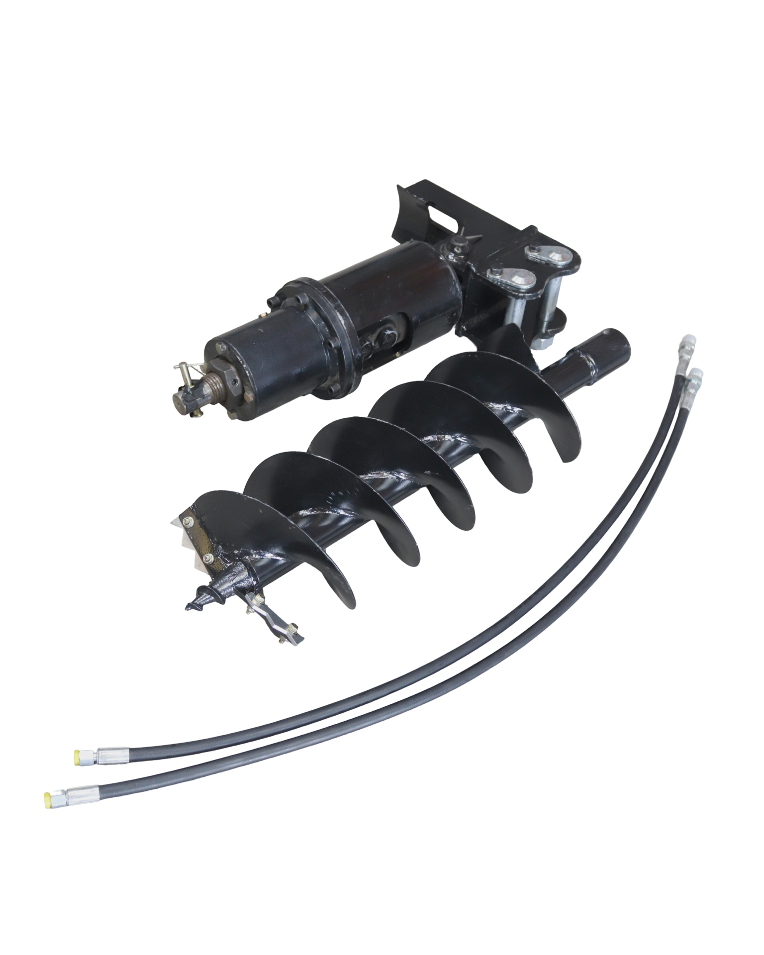 Ahoyador / Barrena Hidráulico de Perforación de 30cm de Diámetro y 80cm de Largo (Sin Contar el Motor). Diseñada para Trabajos Exigentes de Perforación en Terrenos Compactos. Compatible con Sistemas Hidráulicos de Excavadoras, Ofrece un Rendimiento Óptimo en Proyectos que Requieren Precisión y Fuerza. Se Conecta al Circuito Hidráulico de la Máquina Portadora. Una vez Activada, Transmite la Fuerza Directamente al Cabezal de Perforación, Facilitando la Penetración del Terreno Sin Esfuerzo Mecánico Adicional.