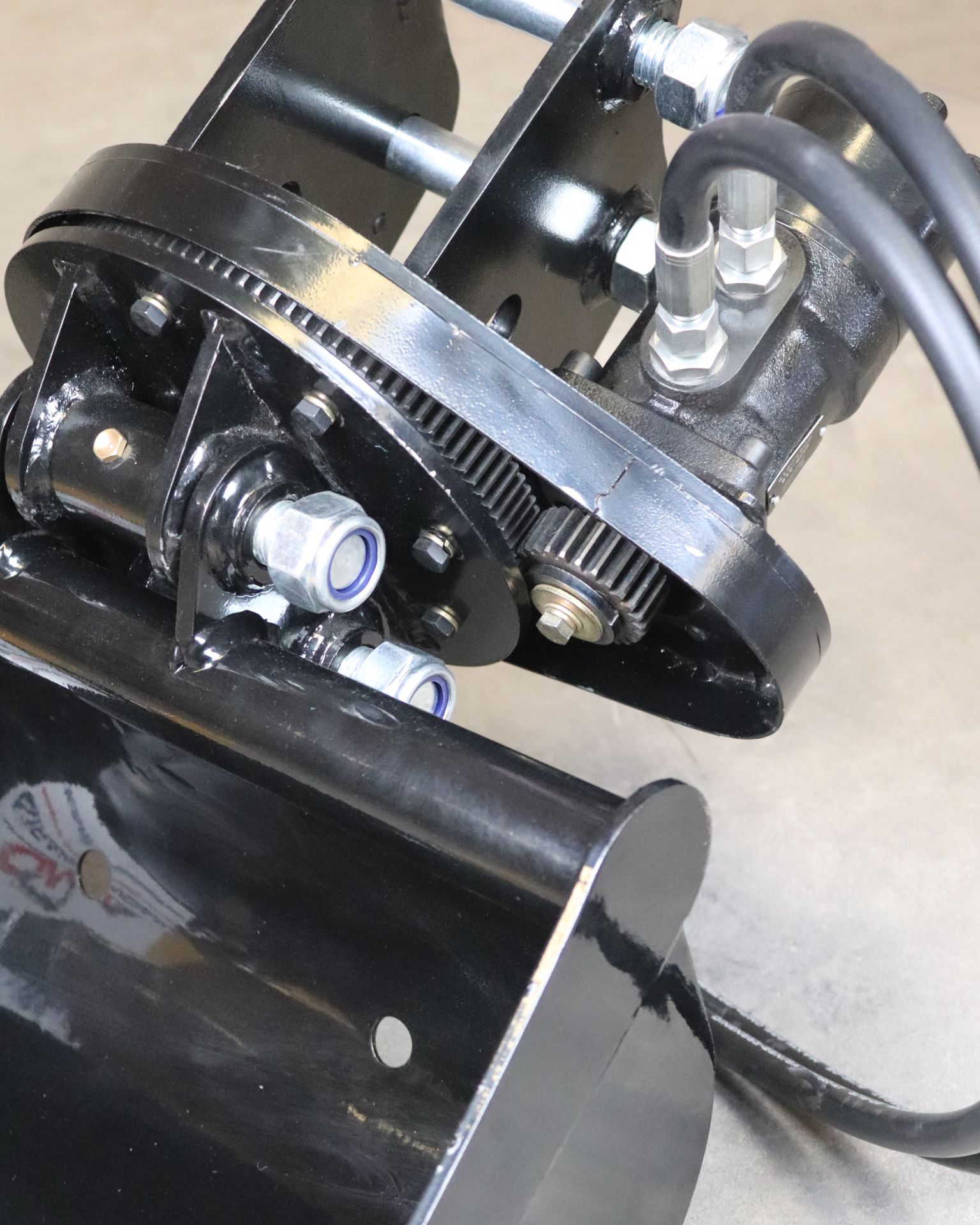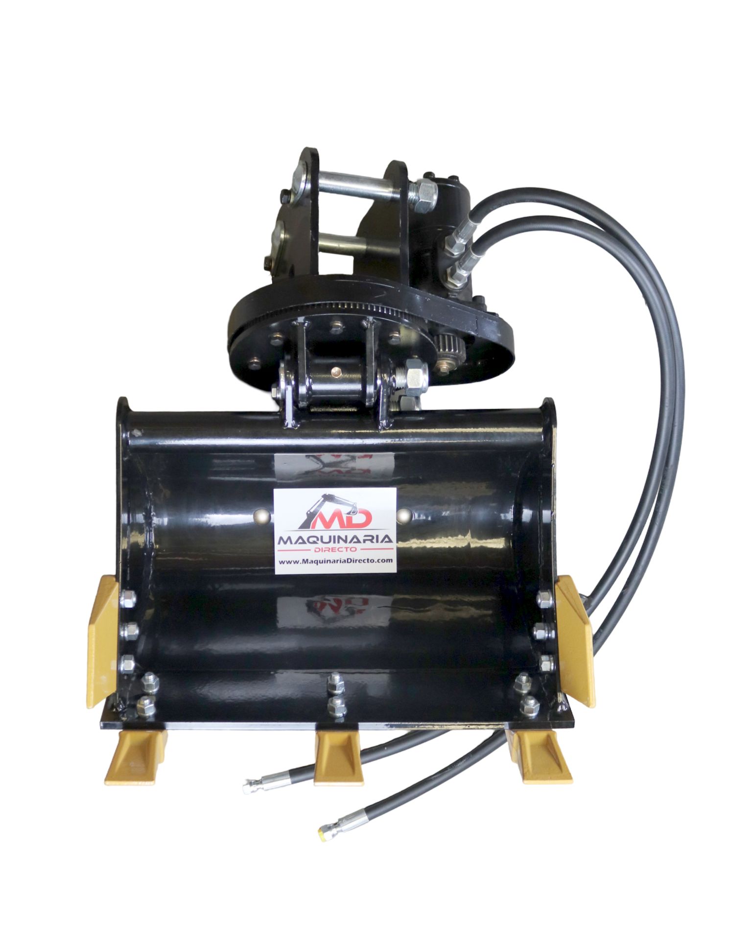 Cazo Giratorio Compacto con Sistema Hidráulico Integrado para Pins o Bulones de 25mm, Ideal para Trabajos de Precisión en Espacios Reducidos. Su Diseño Robusto, con Giro Motorizado Superior y Dientes Reforzados, permite Movimientos Laterales sin Necesidad de Recolocar la Máquina, Mejorando la Productividad y Reduciendo el Desgaste. Se Instala en el Brazo de la Máquina como un Implemento Estándar. El Operador Controla la Rotación del Cazo desde la Cabina, lo que permite Excavar, Nivelar o Limpiar en Ángulo, Facilitando Maniobras en Zonas con Espacio Limitado.