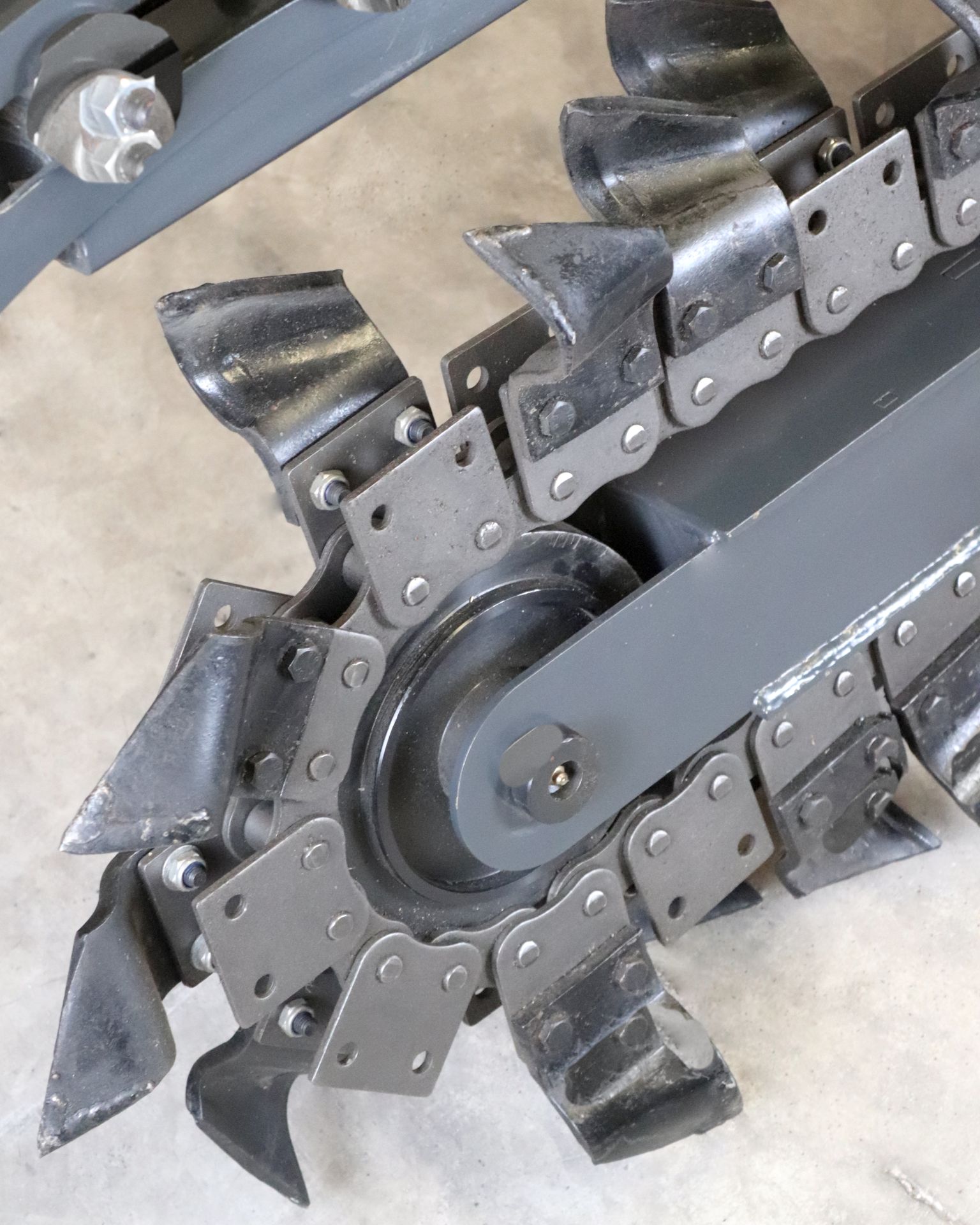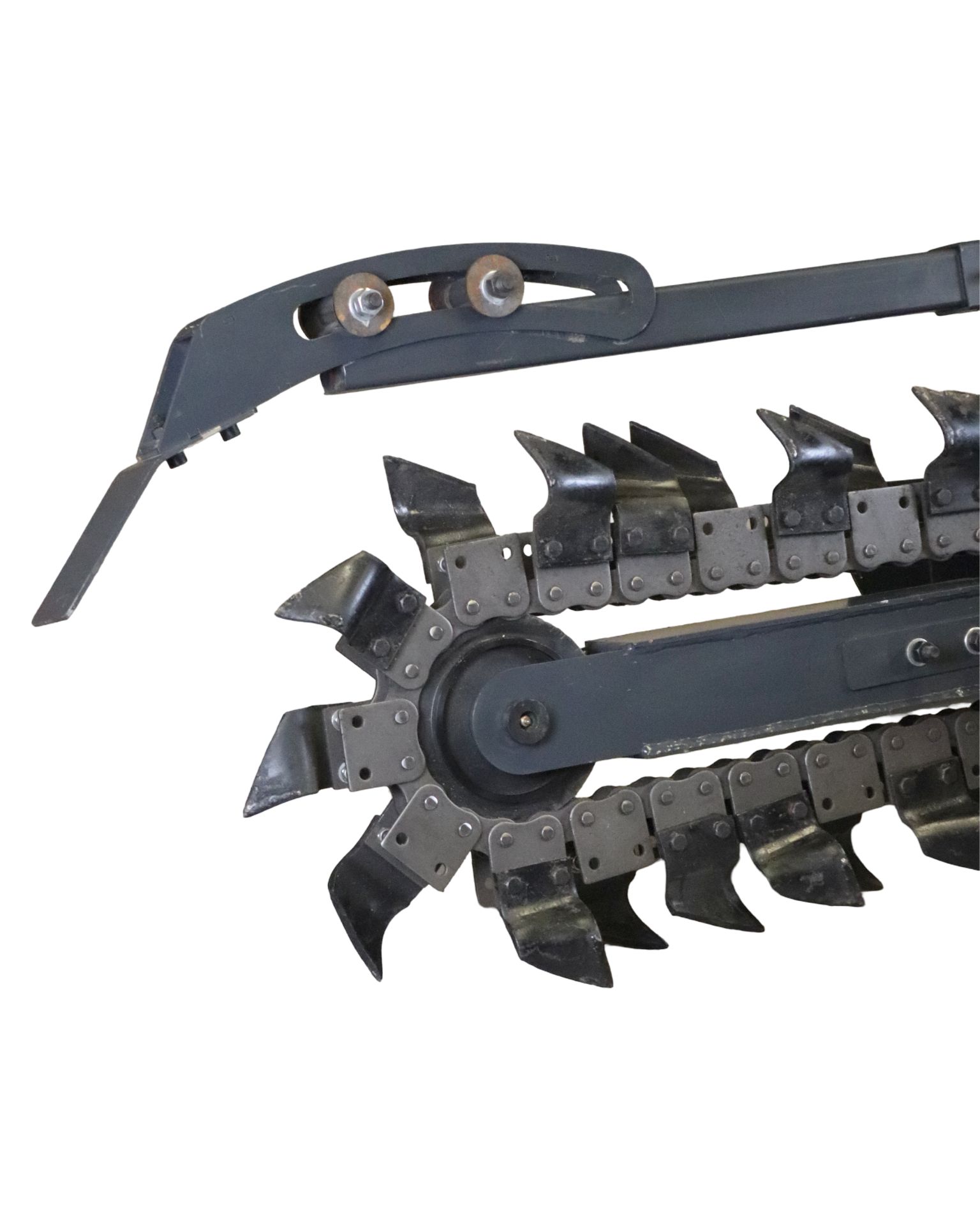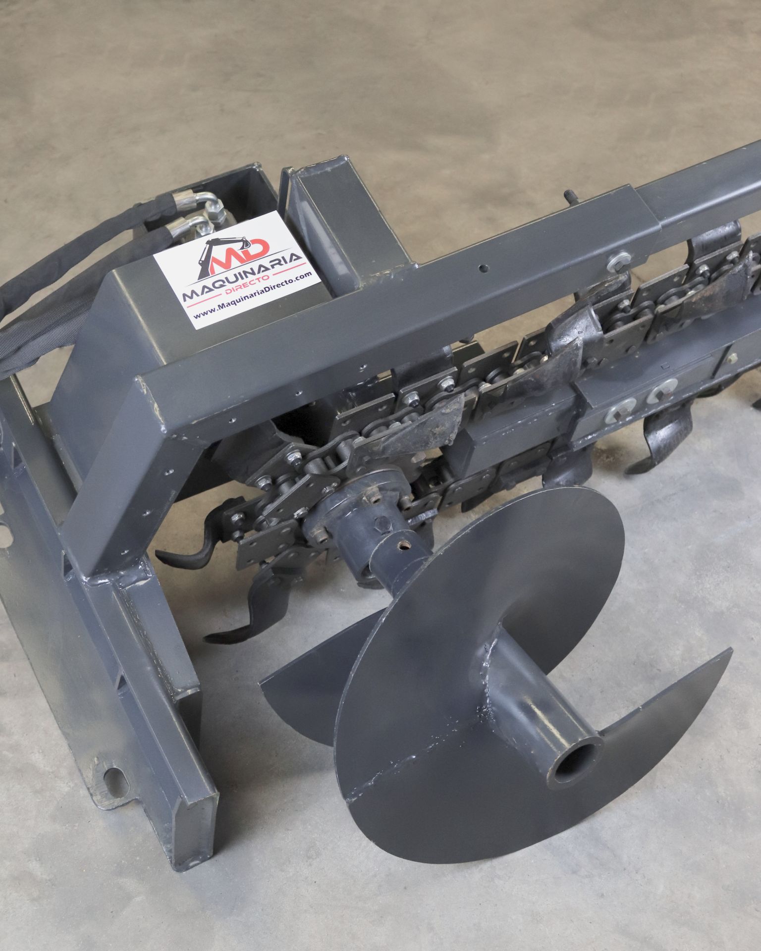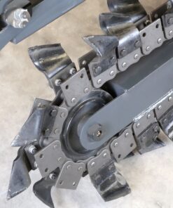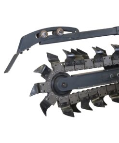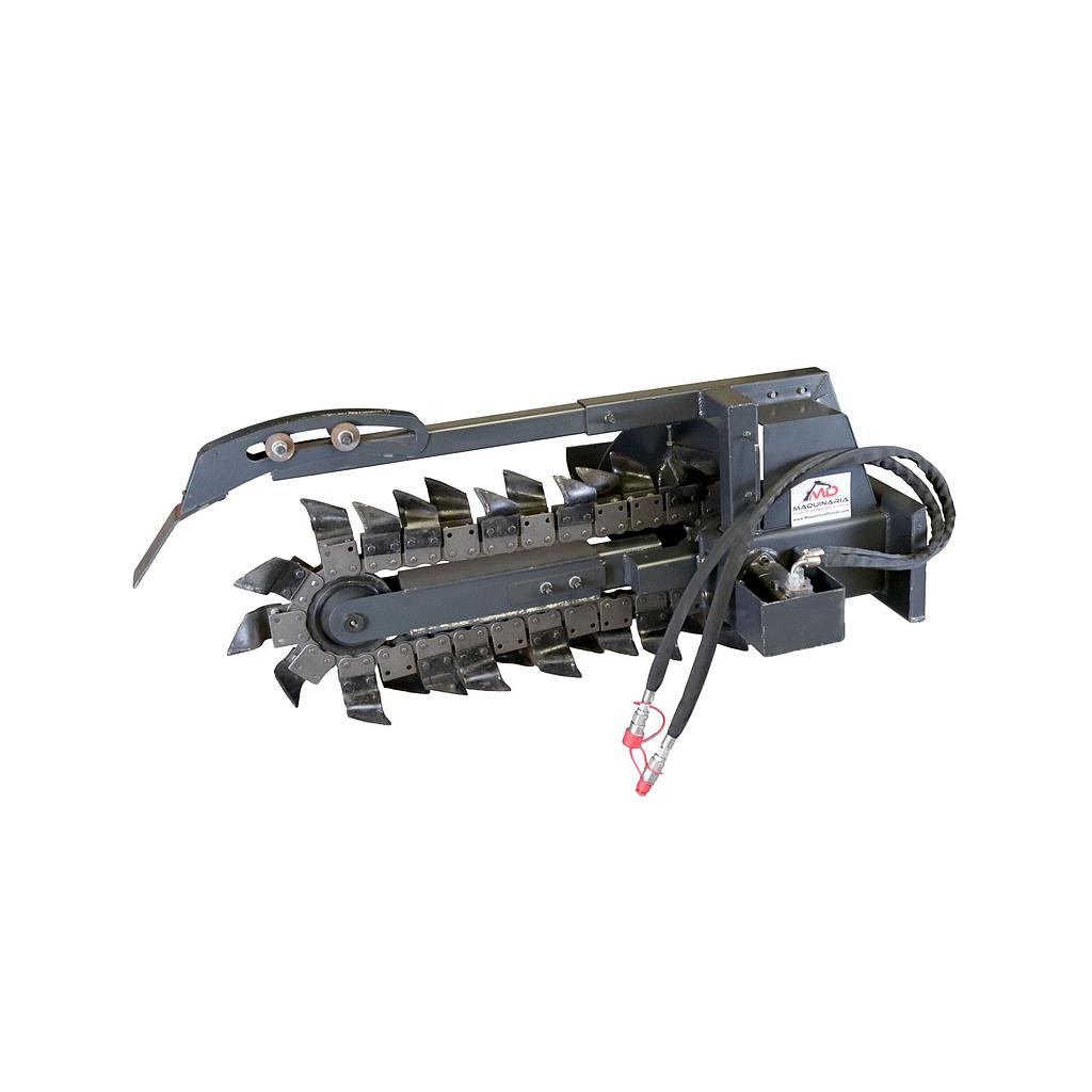 Implemento Diseñado para la Excavación Rápida y Precisa de Zanjas, Ideal para Instalaciones de Cañerías, Cables Subterráneos o Drenajes. Equipada con una Cadena de Corte con Dientes de Alta Resistencia, Permite trabajar en Distintos Tipos de Suelo, Incluyendo Terrenos Duros y Compactos.