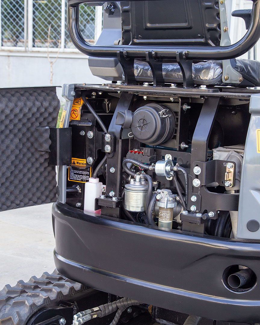 Al Igual que en la KB18 el Cilindro Inferior de la Pluma ha Sido Diseñado para asegurar que el Antebrazo no Choque con el Cilindro de la Pluma Cuando se Trabaja , Encontrándose en la parte Posterior de la Misma y Aumentando así la Vida Útil del Cilindro. Excalibur KB18 tiene un Ventilador de 10 Aspas para una Mejor Disipación del Calor, Bombas Separadas (una en el Lado Derecho del Motor y otra en la Parte Delantera) y un Filtro Diésel Adicional Para Proteger el Sistema de Combustible. Diseño Compacto y Techo de 4 Patas Desmontable. Ideal para Operar en Zonas Estrechas o Espacios de Difícil Acceso. Además, el Cuerpo de la Cola, no Excede la Oruga, facilitando su Giro y Movimiento. Brazo Giratorio, esta Característica brinda a Facilidad para Trabajar, además, el Giro Lateral se Acciona con el Pie, lo que hace que sea Cómodo y Rápido. El Acceso al Motor por Elevación Frontal ayuda a Facilitar el Mantenimiento y Reparaciones, ya que la Búsqueda de Fugas, Cambio de Batería, Llenado de Aceite, Etc, son Fáciles de Hacer y Muy Accesibles. La Conexión Hidráulica para Implementos, está Incluida de Serie. Una Gran Opción de Implementos están Disponibles. Contacta con su Distribuidor para Consultar el Catálogo.