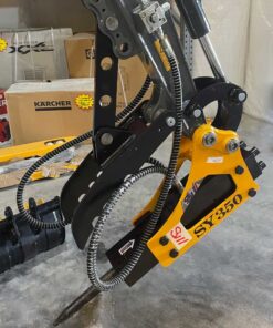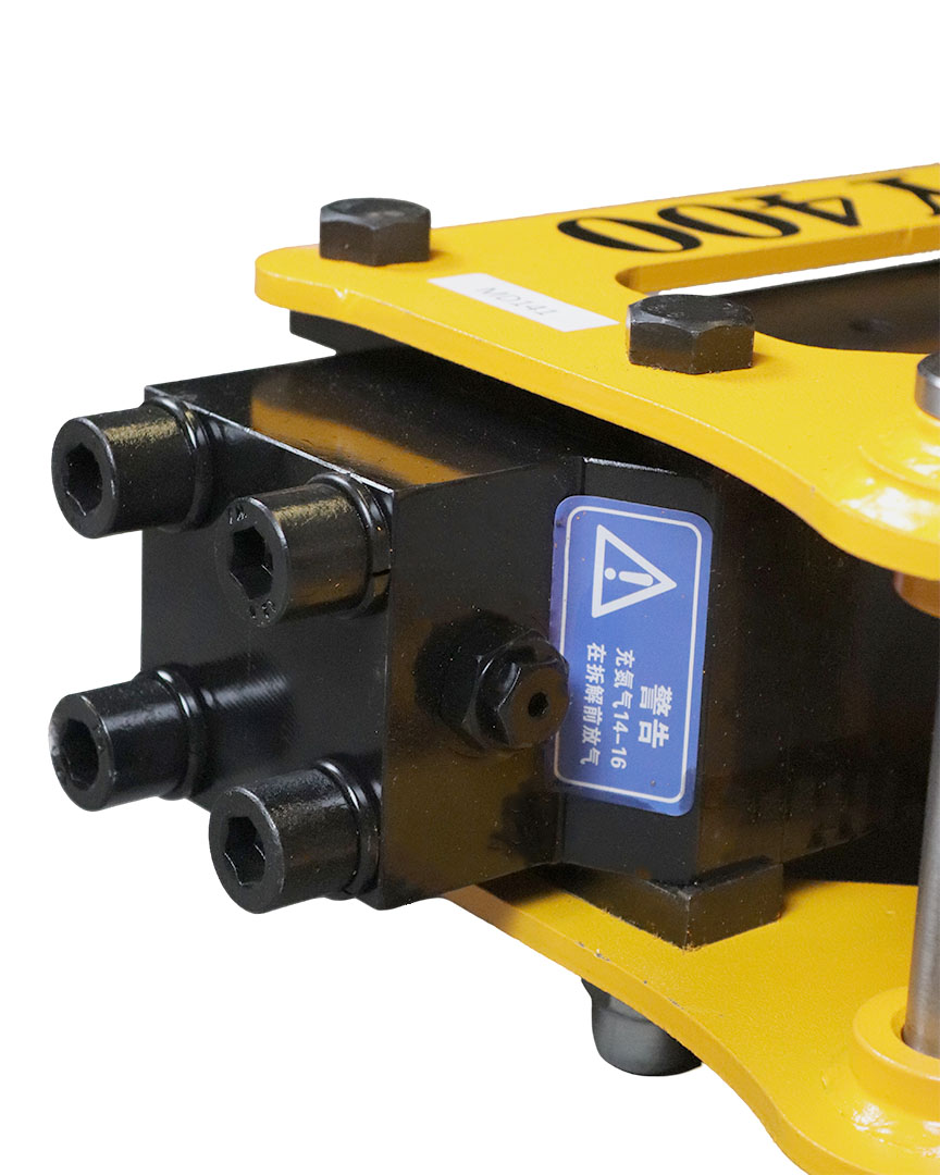El Martillo Hidráulico SY400 es un Potente Martillo de Percusión con Cincel de 40mm, Instalado en una Excavadora para Demoler Estructuras de Hormigón, Rocas y Otros Materiales Resistentes. Su Estructura Robusta y su Tecnología de Impacto Garantizan Fuerza, Durabilidad y Facilidad de Mantenimiento. La presión del gas nitrógeno en el acumulador del martillo hidráulico modelo SY350 debe mantenerse entre 10 y 12 psi para un funcionamiento óptimo. Video Explicativo sobre Nuestros Martillos para Excavadoras King Bull