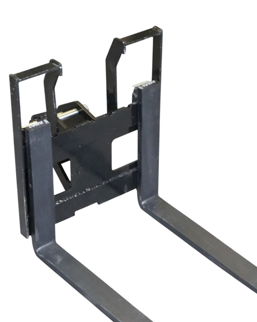 Se Instala fácilmente, y una vez Colocada, permite Levantar, Mover y Colocar Cargas con ayuda de los Controles Hidráulicos de la Máquina. Las Horquillas se pueden ajustar lateralmente para adaptarse a diferentes tamaños de Palets u Objetos.