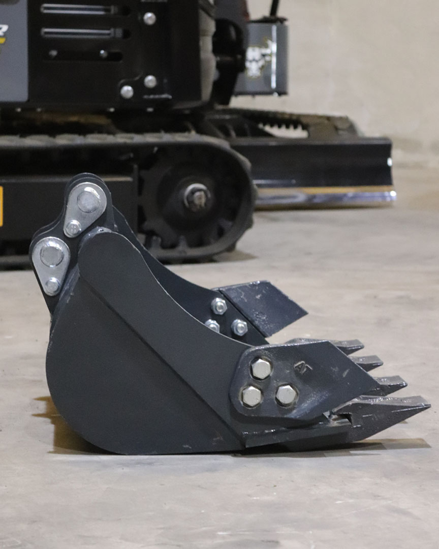 Cazo de Excavación (50CM), para Pins o Bulones de 25mm para Excavadora. Su Estructura Reforzada y Dientes Robustos permiten una Penetración Eficiente en Suelos Compactos, Asegurando Durabilidad y Precisión.