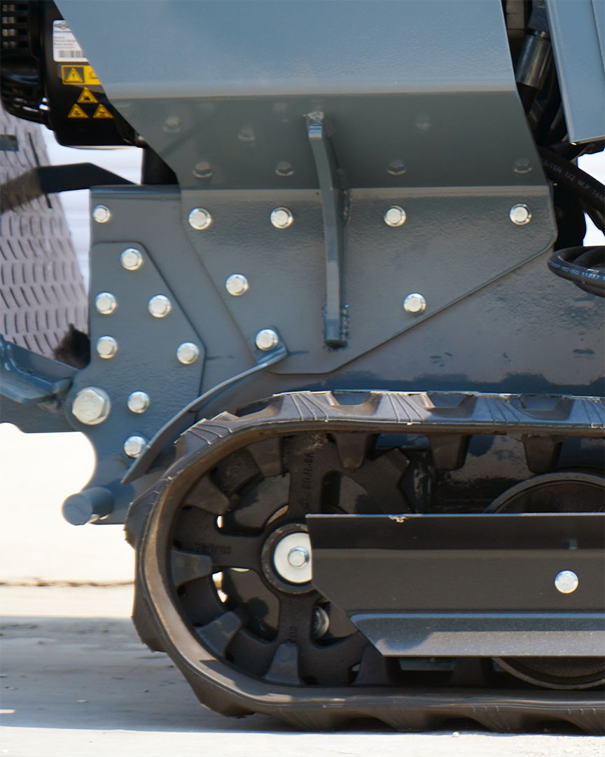 Orugas Reforzadas y Seguras. Goma de Alta Calidad que Protege el Suelo, Reduce Vibraciones y Mejora el Desempeño en Terrenos Blandos.