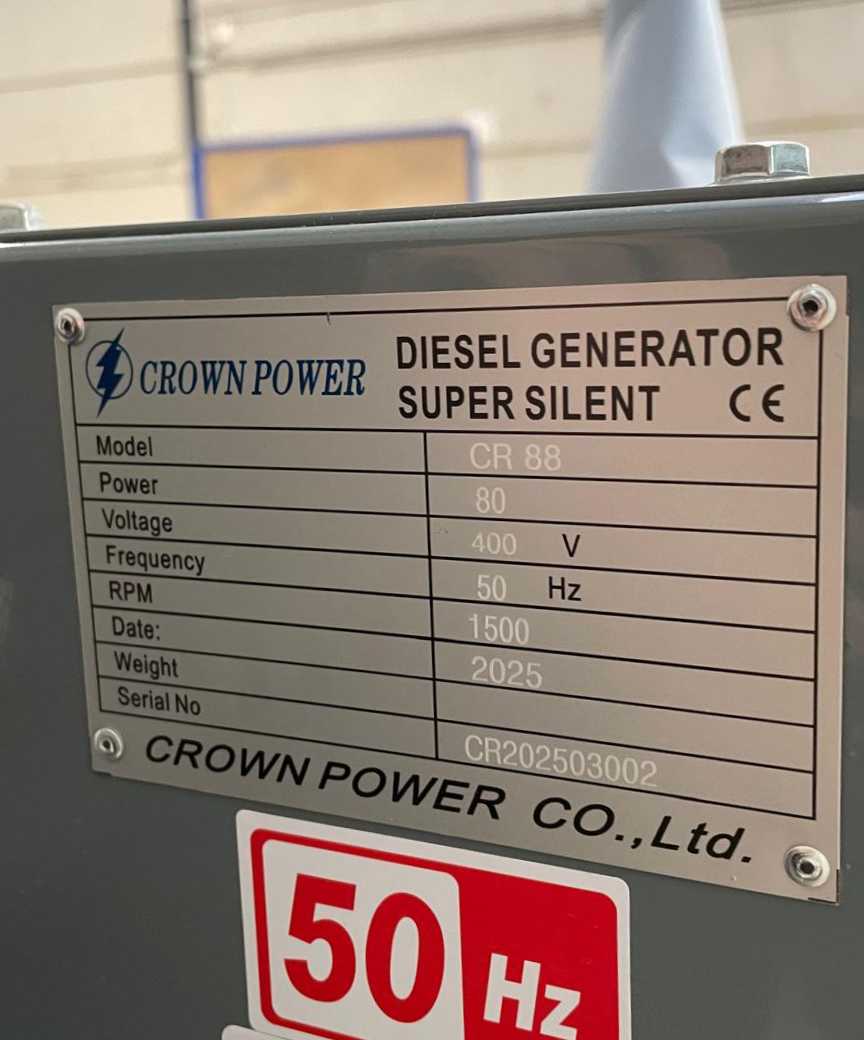 El Generador Crown Power CR88 es un Generador Diésel de 80 kW, Diseñado para Ofrecer Energía Continua y Confiable en Aplicaciones Industriales, Obras, Situaciones de Emergencia o como Respaldo Eléctrico en Negocios. Nuevo, Listo para Usar, y con Certificación CE, se Entrega con Manuales, Llaves y Sistema de Autoarranque para Máxima Comodidad.