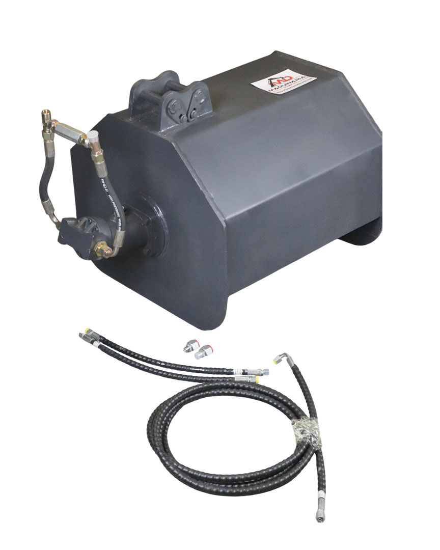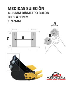 Desbrozadora de Martillos para Pins o Burlones de 25mm, que se acopla a la Excavadora y Opera con un Sistema de Martillos impulsadas por el Circuito Hidráulico de la Máquina, que desmenuza, rompe y astilla la hierba, madera troncos de haste 2.5cm de diametro.