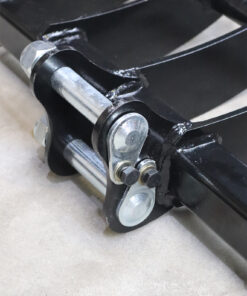 Rastrillo para Pins o Burlones de 25mm, con un Perfil Curvo para Excavar o Cribar y Puntas Puntiagudas para una Penetración Máxima, el Rastrillo de 80 centímetros es un Accesorio para Excavadoras que se Utiliza para Limpiar Terrenos, Recoger Desechos, y Clasificar Materiales.