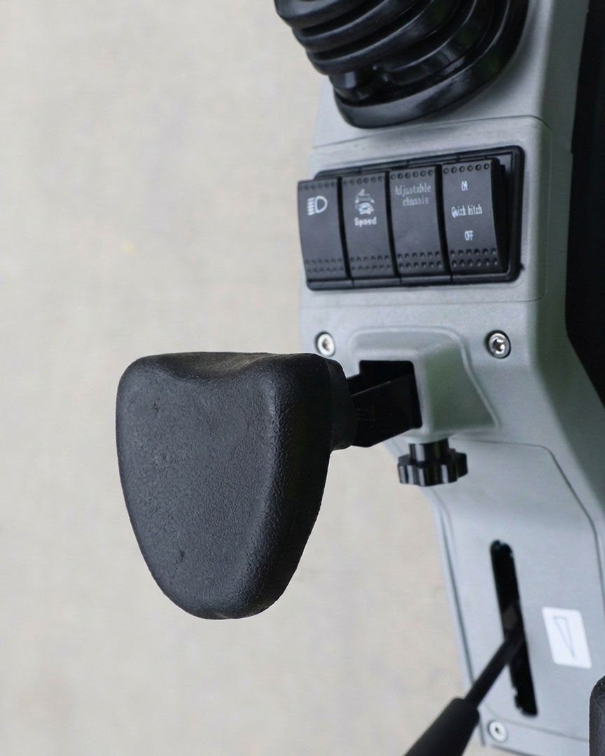 Confort y Control del Operador: Mandos Pilotados Laterales, Asiento Ergonómico Ajustable, Reposabrazos Cómodos y Marcha Alta y Baja.