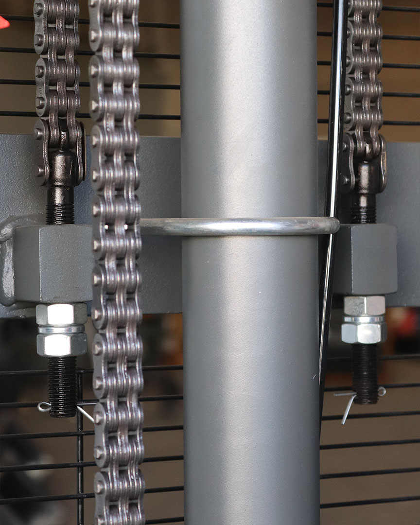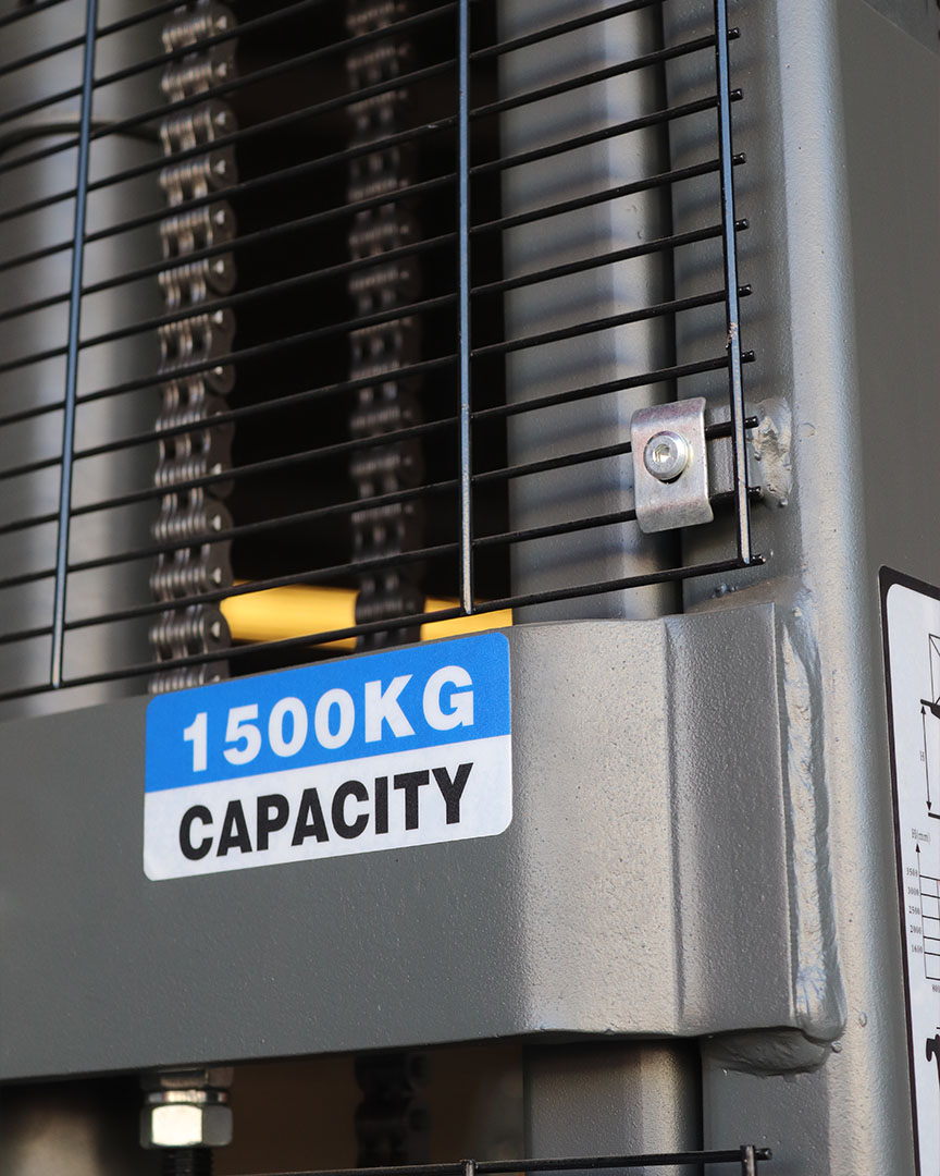 Diseñada para Operaciones de Carga de Hasta 1.500 kg y una Altura de Elevación de Hasta 3 Metros, esta Máquina está Pensada para Trabajar de Forma Eficiente y Segura dentro de Almacenes con Suelo Plano. Su diseño Compacto, junto con Ruedas Pequeñas, permite una Excelente Maniobrabilidad y un Uso Cómodo entre Estanterías y Pasillos Estrechos, Optimizando el Espacio de Trabajo. Incorpora Rejilla de Protección, que Brinda Mayor Seguridad al Operador durante las Tareas de Elevación. Equipada con una Botella Hidráulica Central de Alta Calidad y Cadena de Triple Eslabón.