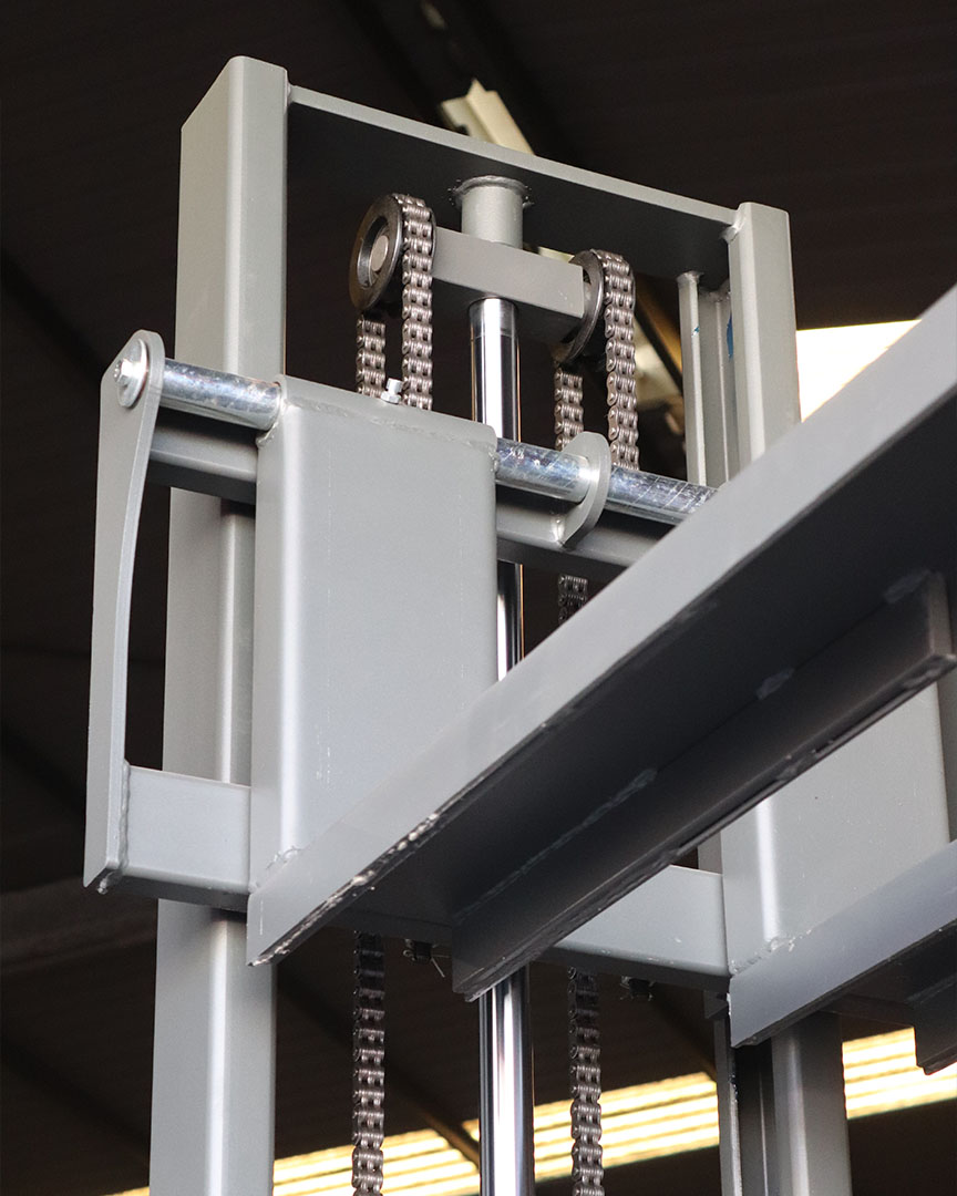 Diseño Optimizado para Almacenes Interiores. Concebida para Trabajar con Cargas de hasta 1.500 kg y una Altura de Elevación de hasta 3 Metros. Su Configuración Garantiza un Desplazamiento Seguro, Preciso y Eficiente en Operaciones Logísticas Diarias. Equipada con Botella Hidráulica Central de Alta Calidad y Cadena de Triple Eslabón, Proporciona una Elevación Estable, Uniforme y Segura, Incluso en Trabajos Continuos. Estos Componentes Aseguran una Mayor Durabilidad y un Rendimiento Constante.